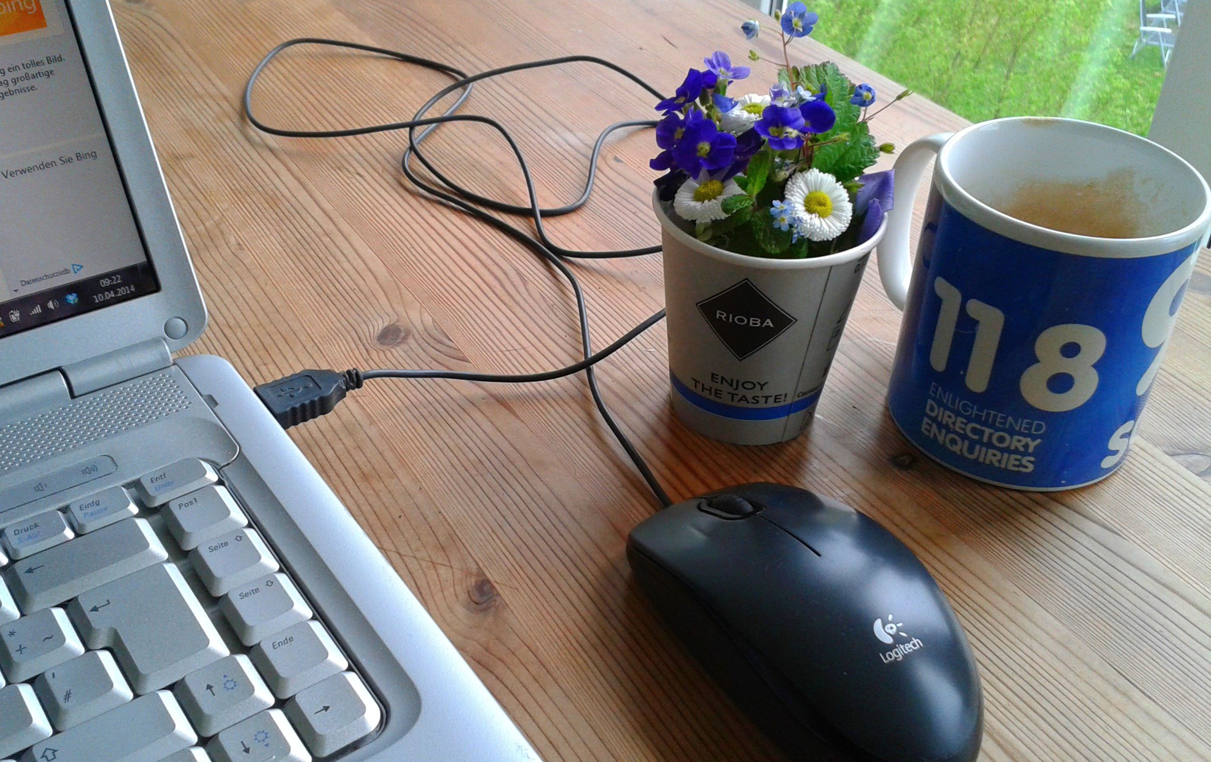 Heute, mit 31 und mit einem Vollzeitjob, brauche ich meinen Schlaf etwas dringender als damals. Und habe entdeckt: Die Morgenstunden sind als Schreibzeit auch nicht übel. Da sind Hirn und Geist ausgeruht, Herz und Seele haben sich ein paar Stunden lang erholen können vom aufwühlenden Vortag, und ich bin, mit der Hilfe eines starken Kaffees aus meiner liebsten irischen Werbetasse, halbwegs wach. Wenn ich dann erstmal an meinem momentanen Lieblingsarbeitsplatz im Wintergarten sitze und mit dem Schreiben angefangen habe, will ich meistens gar nicht mehr aufhören.