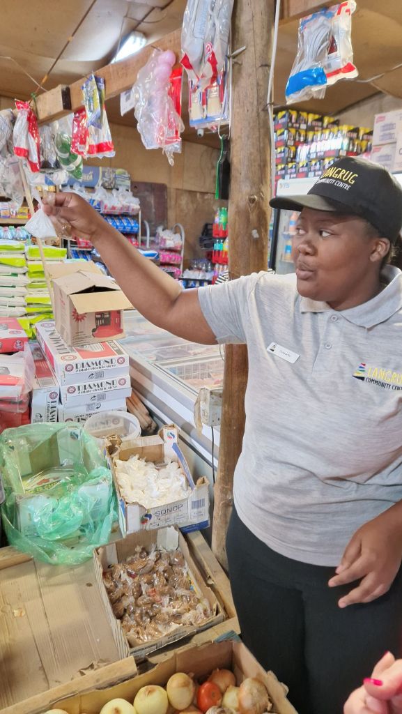 In Langrug ist mir A.J. begegnet, ein 29-jaehriger strahlender Suedafrikaner, der im Township aufgewachsen ist und dort jetzt mit anderen das Community Centre organisiert. Dort wird unter anderem jeden Samstag fuer 400 Kinder Suppe gekocht. An Schultagen bekommen die Kinder ihre Mahlzeiten von der Regierung in der Schule, aber am Wochenende muessen die bettelarmen Familien sich selbst versorgen. Weil die Leute groesstenteils so arm sind, kann man in den Supermaerkten im Township nicht nur ganze Packungen kaufen, Kaffee, Brot, Windeln, sondern auch einzeln abgepackte Portionen von etwas, zum Beispiel loeslichen Kaffee. So kann man sich hin und wieder eine Tasse Kaffee leisten, muss aber nicht das Geld fuer ein ganzes Glas aufbringen.
