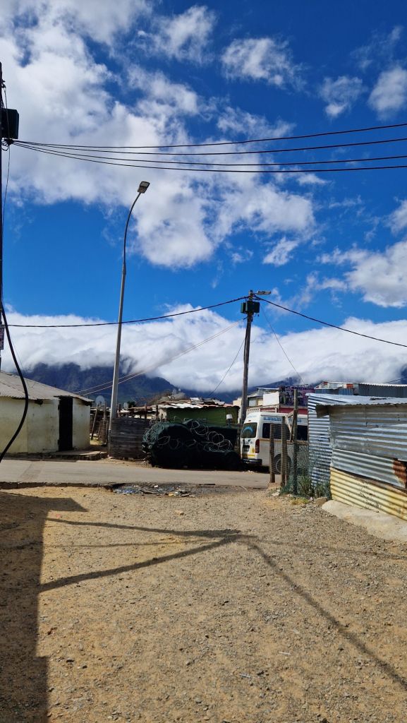 Vor einigen Tagen habe ich ein Township hier besucht. Townships sind teils illegal gebaute Staedte, in denen Menschen aermliche Huetten aus allem errichten, was sie so finden koennen: Wellblech, Steine, Lehm. Fuer Suedafrika leider wenig ueberraschend ist, dass dort so gut wie nur coloured und black people leben. Die Weissen haben, weil die Apartheid erst Mitte der 90er Jahre abgeschafft wurde, ueber Jahrzehnte nicht nur Reichtum aufgebaut, komfortable Haeuser errichtet und Golfplaetze angelegt, sondern auch sehr von der Ausbeutung der unterdrueckten schwarzen Bevoelkerung profitiert – und tun es mit grosser Selbstverstaendlichkeit noch immer. Besuche in Townships sind nicht unumstritten, denn natuerlich moechte man die Menschen dort nicht anglotzen, bemitleiden oder sonstwie herabwuerdigen. Andererseits spuelen diese Besuche Geld in die Kassen der Community Center, die Besucher:innen spenden anschliessend noch fleissig – und die nette junge Frau, die uns unter anderem dort herumgefuehrt hat, findet es unterm Strich gut, dass Menschen von ausserhalb sich fuers echte Leben der Leute in den Townships interessieren.