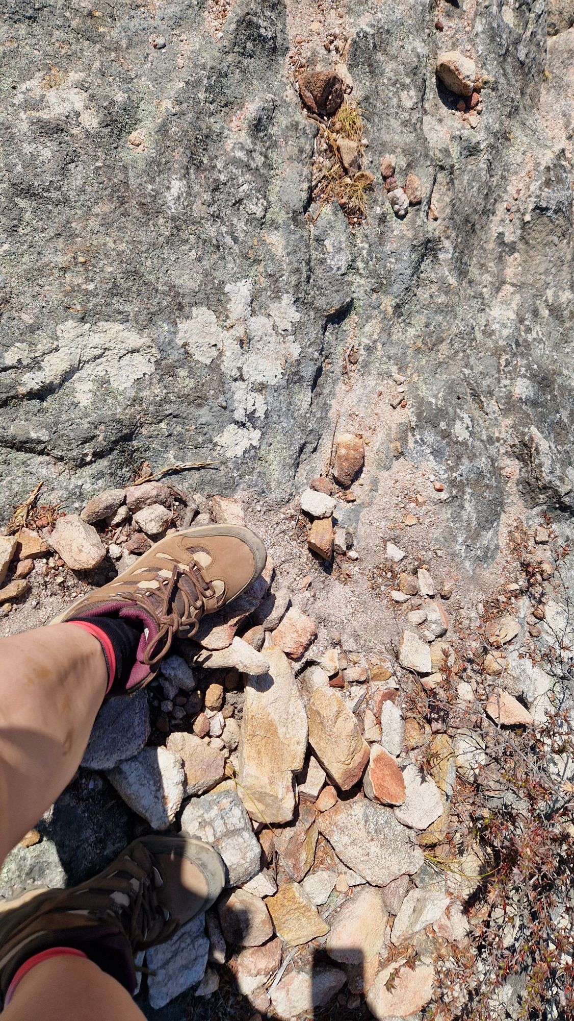 Was man wissen muss, bevor man sich auf den Weg macht: Wandern in Südafrika ist häufig abenteuerlich. Man steigt über riesige Felsbrocken, schlittert glatte Steinwände entlang, zieht sich an Stahlketten hoch und muss die Füße gut anheben, weil man sonst über Geröll fällt. Wanderschuhe sind eine Notwendigkeit, genauso Stöcke, mit denen man sich abstützt, hochstemmt, die einfach permanent gebraucht werden. Mittendrin sagte ich zu meinem Vater: „Ich bin grade so dankbar für meine Wanderschuhe und vor allem für die gute Sohle.“ Und wirklich, ohne ein Profil lässt sich so ein Gelände nicht bezwingen. Ich war mal vor ein paar Jahren in Birkenstocks auf den spiegelglatten Paarl-Mountains, da bin ich nur so herumgerutscht. Das wird mir hier nicht nochmal passieren.
